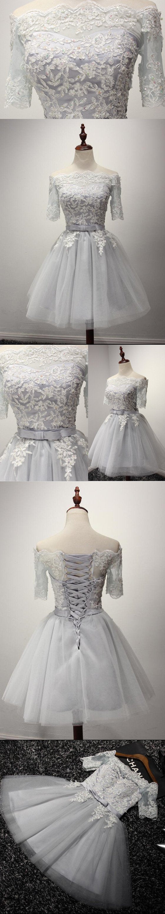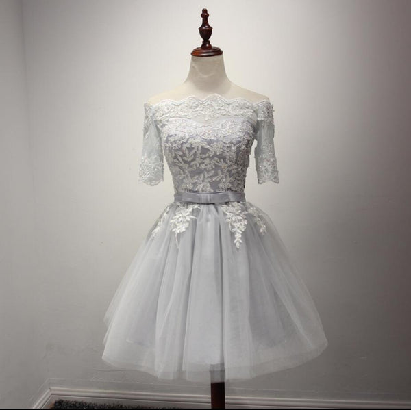 Short Sleeve Gray Lace Homecoming Prom Dresses, Affordable Short Party Prom Dresses, Perfect Homecoming Dresses, CM209