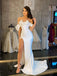 Simple White Mermaid Off Shoulder High Slit Maxi Long Prom Dresses,13079