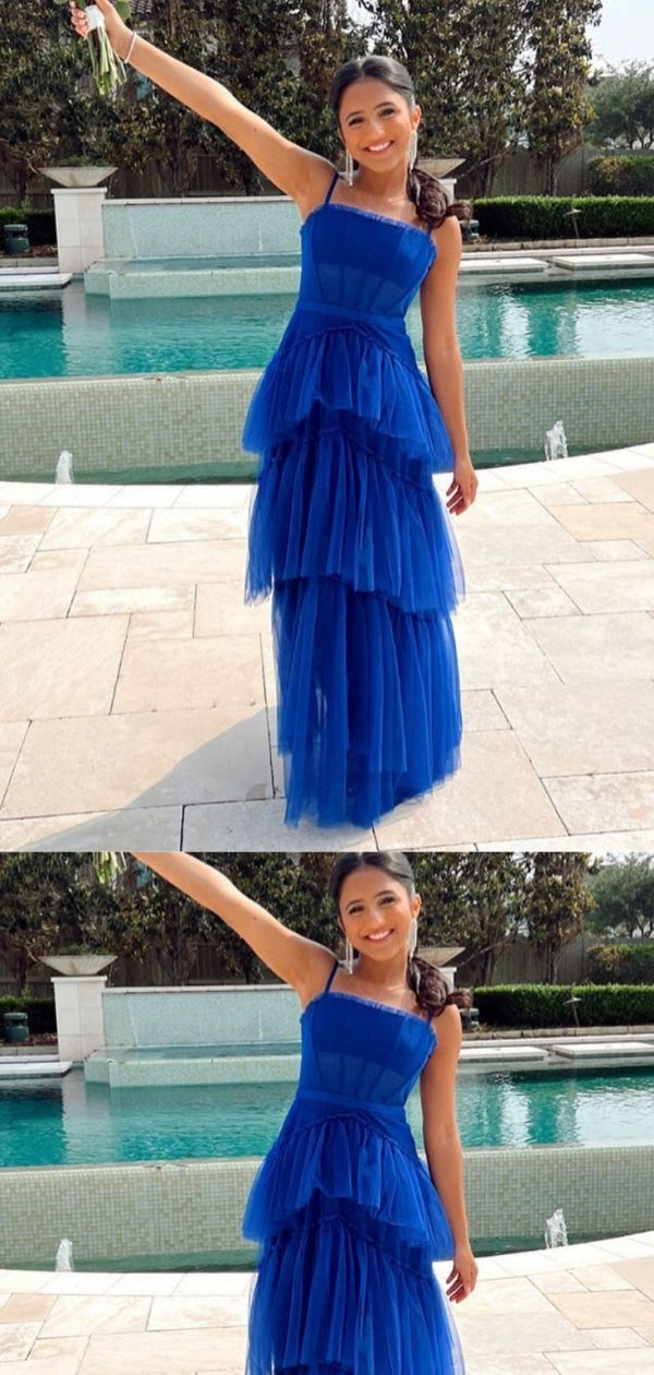 Cute Blue A-line Spaghetti Straps Maxi Long Party Prom Dresses,Evening Dress,13273