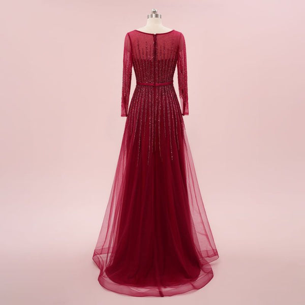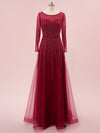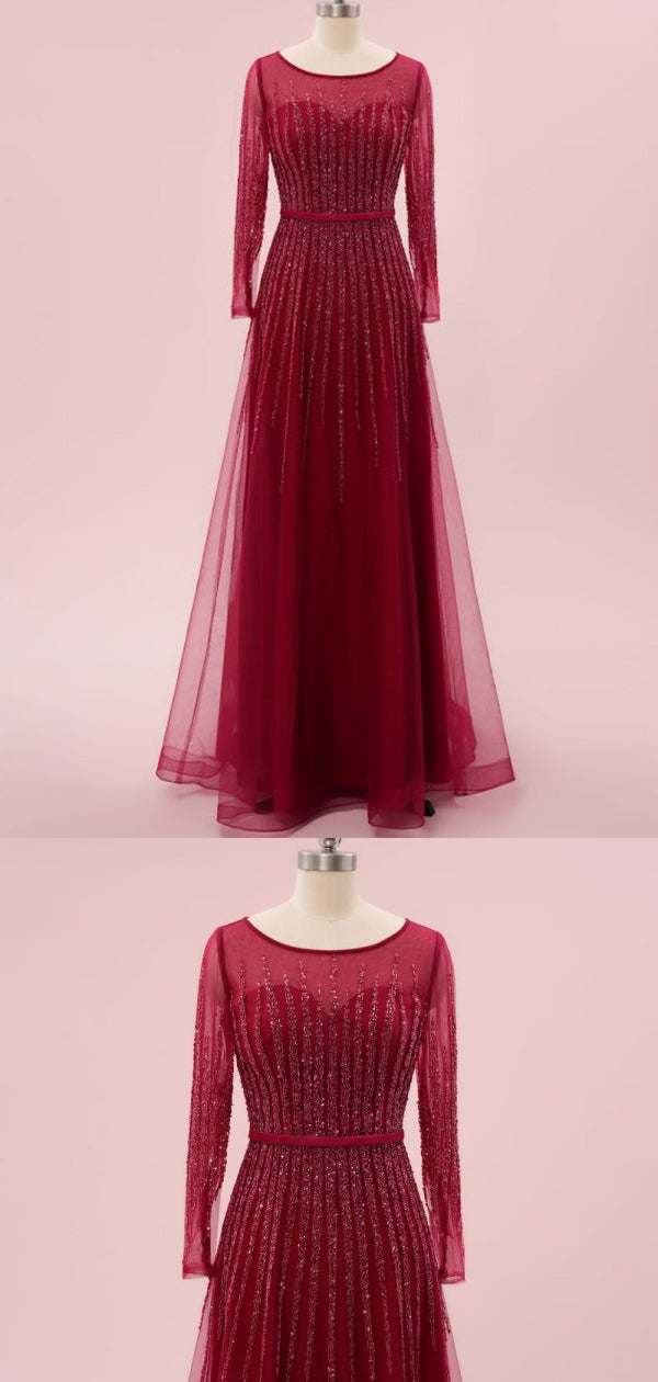 Elegant Mermaid Burgundy Long Sleeves Maxi Long Party Prom Dresses,Evening Dress,13306