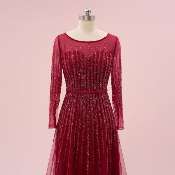 Elegant Mermaid Burgundy Long Sleeves Maxi Long Party Prom Dresses,Eve