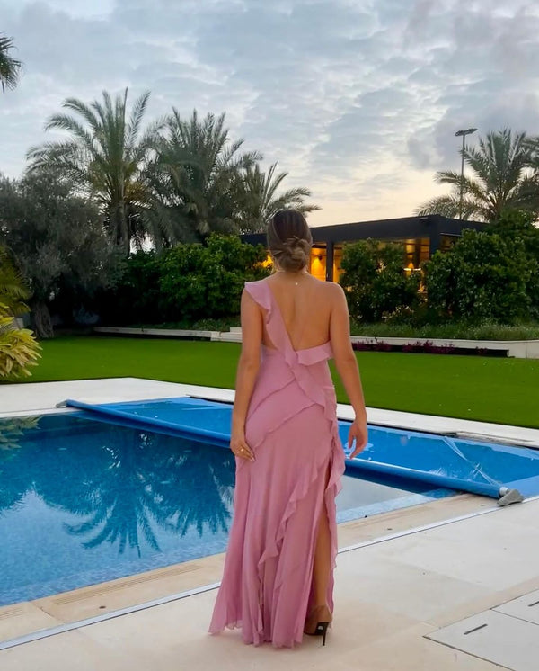Elegant Pink A-line With Slit Maxi Long Party Prom Dresses,Evening Dress,13338