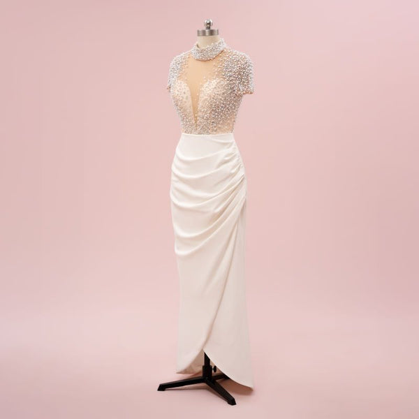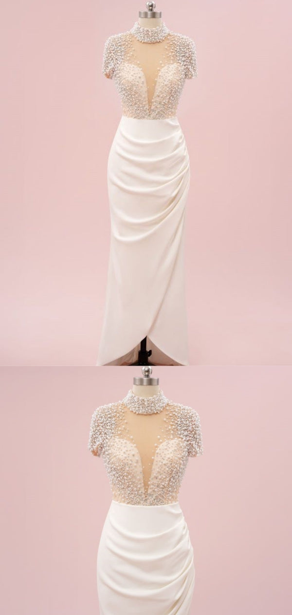 Elegant Sheath Short Sleeves Maxi Long Party Prom Dresses,Evening Dress,13305