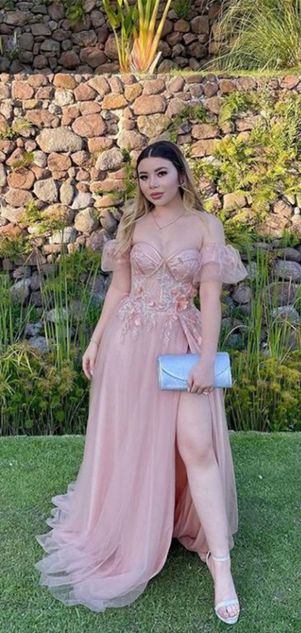 Floral A-line Off Shoulder Side Slit Maxi Long Party Prom Dresses, Evening Dress,13234