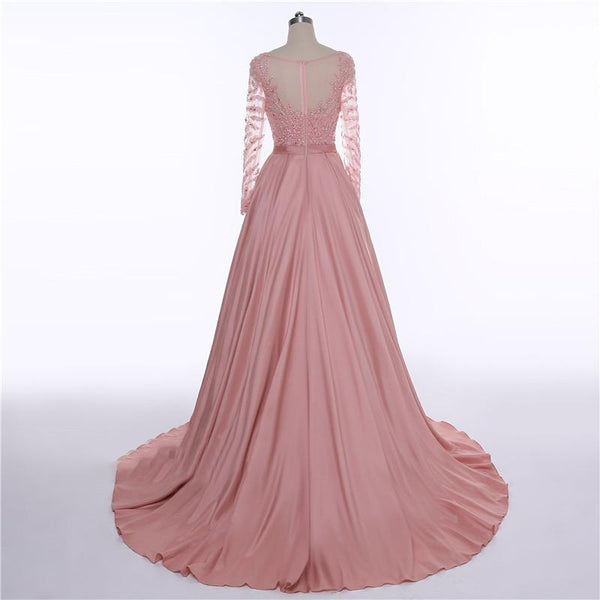 Long Sleeve See Through Heavily Beaded Dusty Pink Long Evening Prom Dresses, Popular Cheap Long Party Prom Dresses, 17228