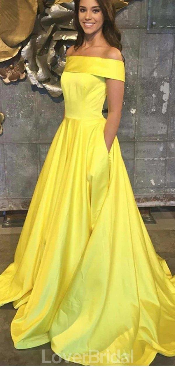 Off Shoulder Yellow Cheap Long Evening Prom Dresses, Evening Party Prom Dresses, 12157