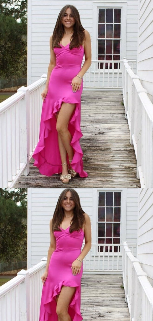 Pretty Hot Pink A-line High Low Long Party Prom Dresses To Impress,Evening Dress,13482