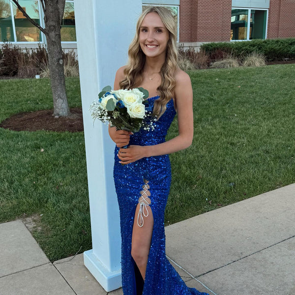 Sexy Blue Mermaid Side Slit Long Party Prom Dresses To Impress,Evening