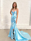 Sexy Blue Mermaid Spaghetti Straps Side Slit Maxi Long Party Prom Dresses, Evening Dress,13197