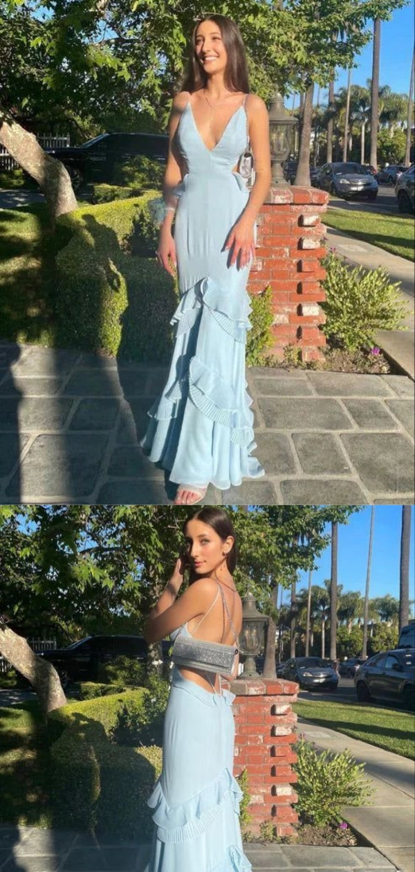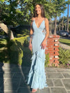 Sexy Blue Mermaid V-neck Maxi Long Party Prom Dresses,Evening Dress,13271