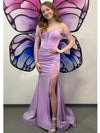 Sexy Lilac Mermaid Off Shoulder Side Slit Long Party Prom Dresses, Evening Dress,13164
