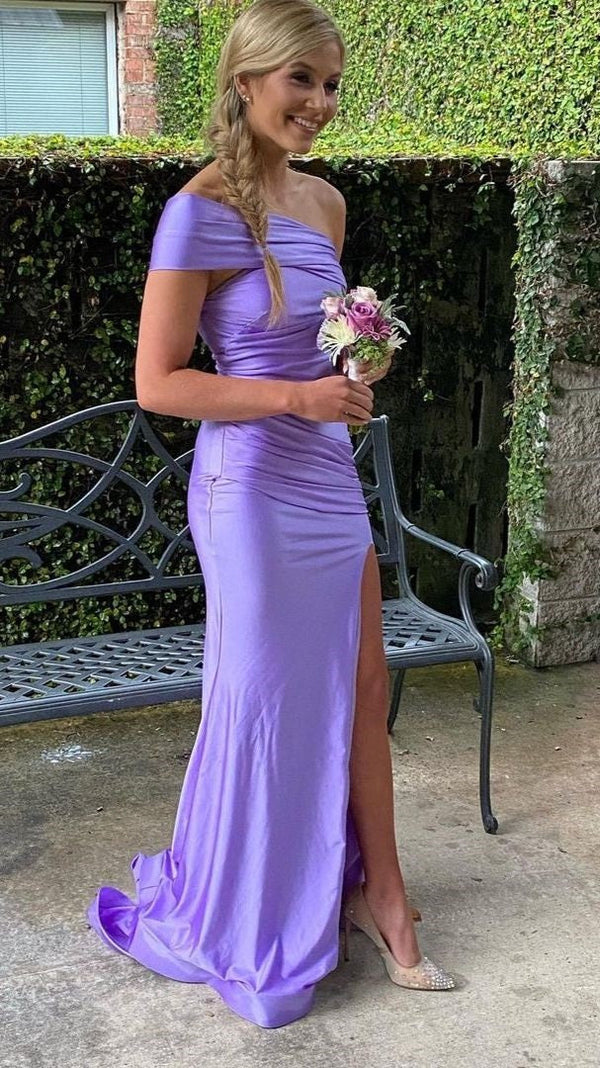 Sexy Mermaid One Shoulder Side Slit Long Party Prom Dresses, Evening Dress,13154