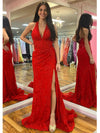 Sexy Red Mermaid Halter Side Slit Maxi Long Party Prom Dresses, Evening Dress,13215