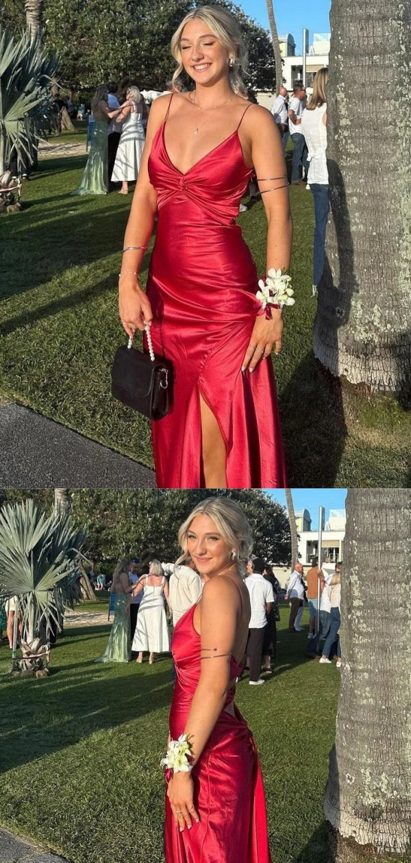 Sexy Red Mermaid V-neck Long Party Prom Dresses To Impress,Evening Dre