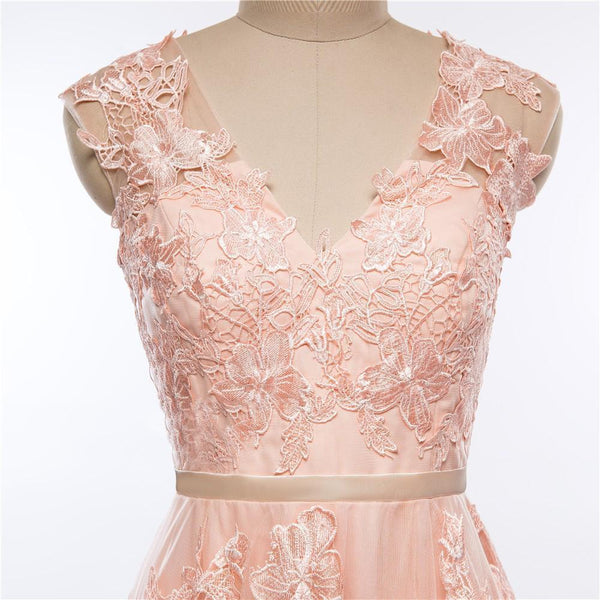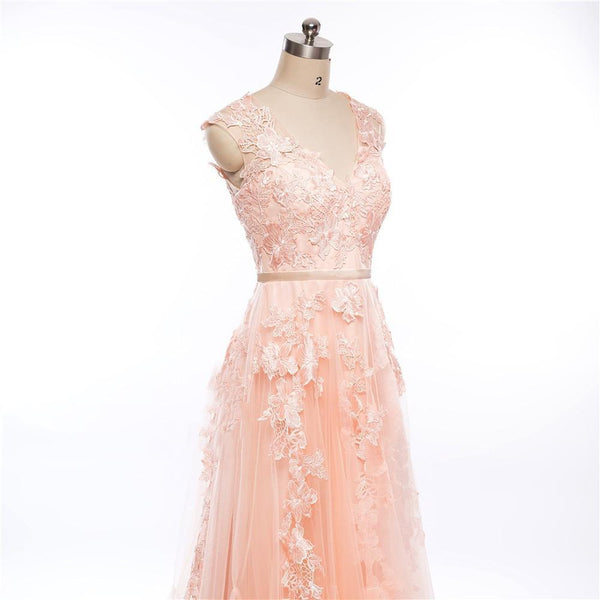 Sexy See Through V Neckline Peach Long Evening Prom Dresses, Popular Cheap Long Party Prom Dresses, 17224