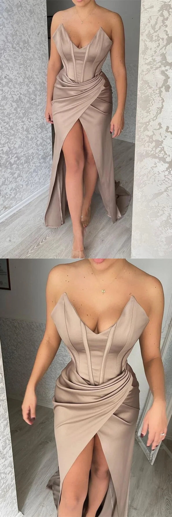 Sexy Sheath Strapless V-neck Side Slit Party Prom Dresses, Evening Dress,13218