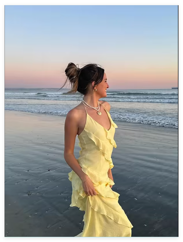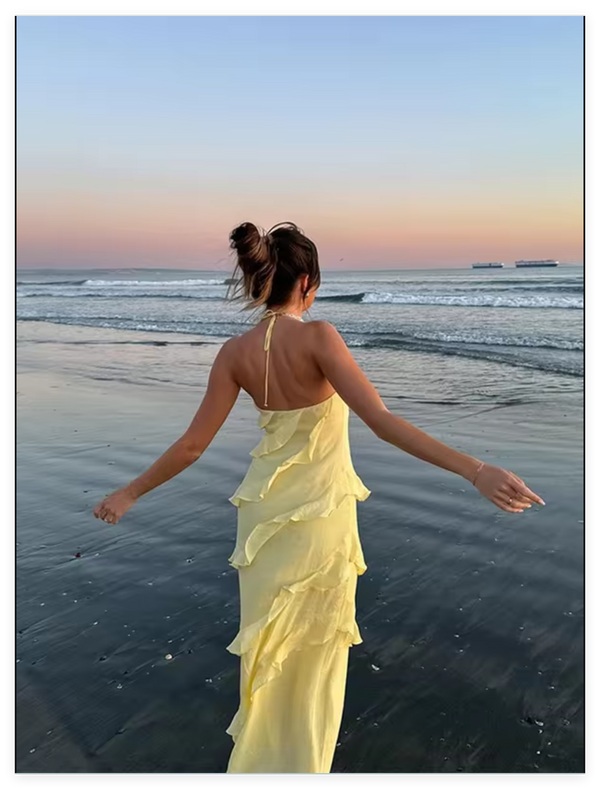 Sexy Yellow Sheath Halter V-neck Maxi Long Party Prom Dresses To Impre