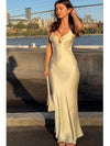 Simple Champagne Sheath Spaghetti Straps Maxi Long Party Prom Dresses,