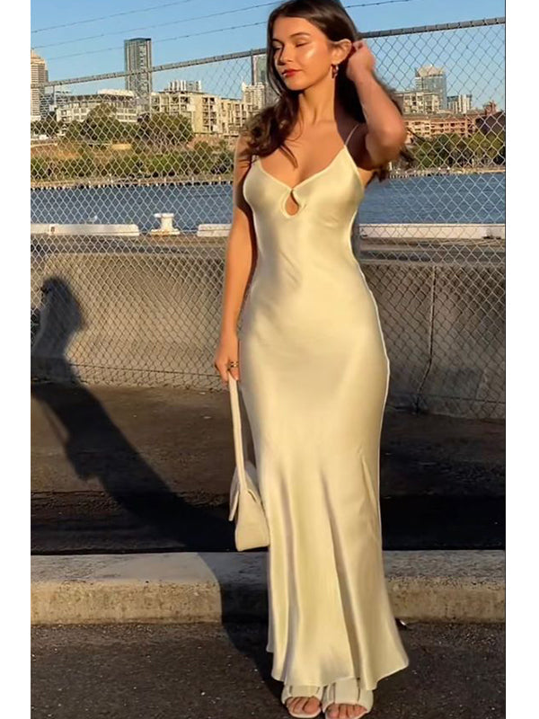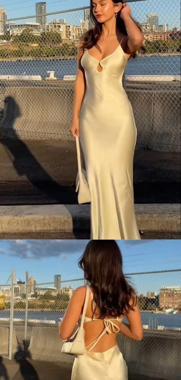 Simple Champagne Sheath Spaghetti Straps Maxi Long Party Prom Dresses,Evening Dress,13290