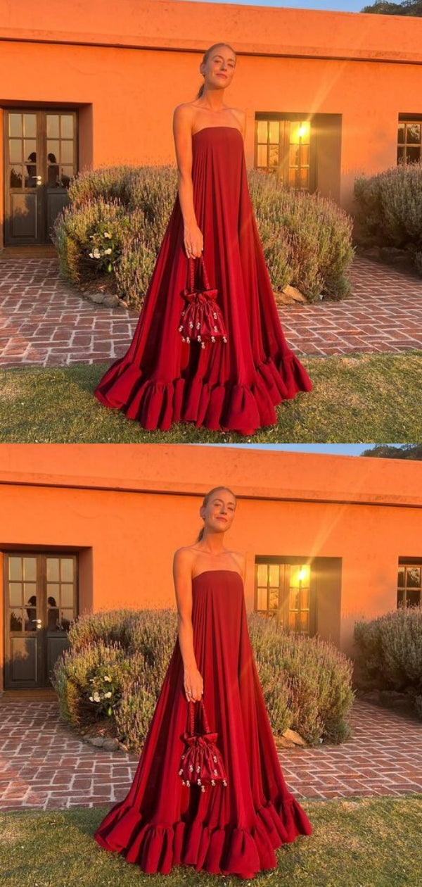 Simple Dark Red A-line Strapless Maxi Long Party Prom Dresses,Evening Dress,13300