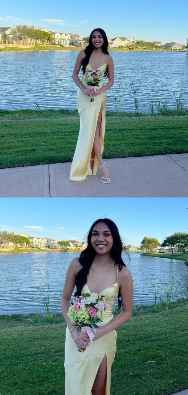 Simple Yellow Mermaid Spaghetti Straps Maxi Long Party Prom Dresses,Evening Dress,13283