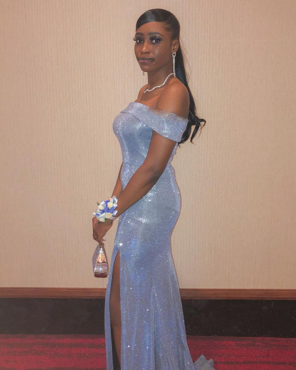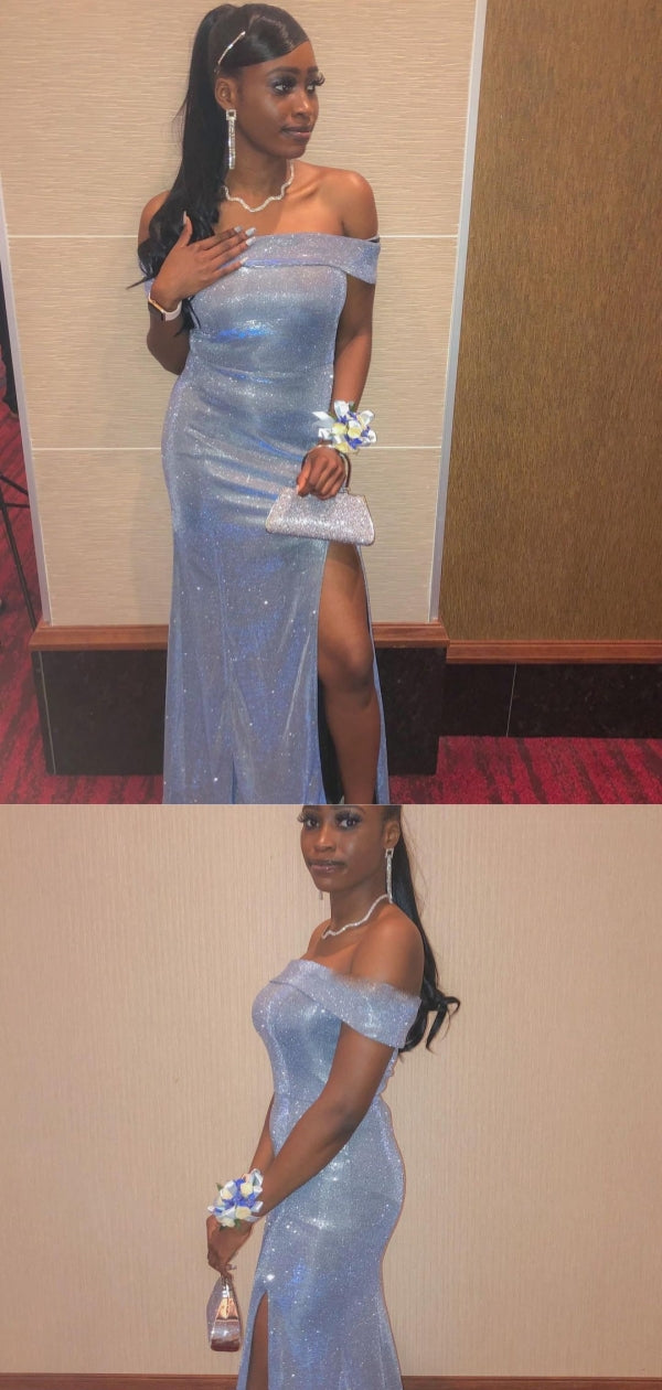 Sparkly Blue Mermaid Off Shoulder Long Party Prom Dresses To Impress,Evening Dress,13433